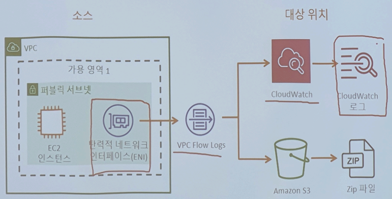: VPC 내에서의 네트워크 흐름(패킷)에 대한 로그를 수집한다.
