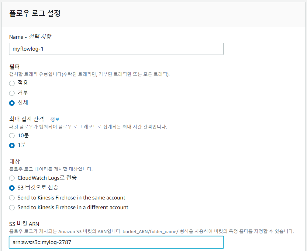 Deny, Allow에 대한 트래픽을 수집한다. AWS Network 관련 서비스들에 대한 선택적 활성화가 가능하다.