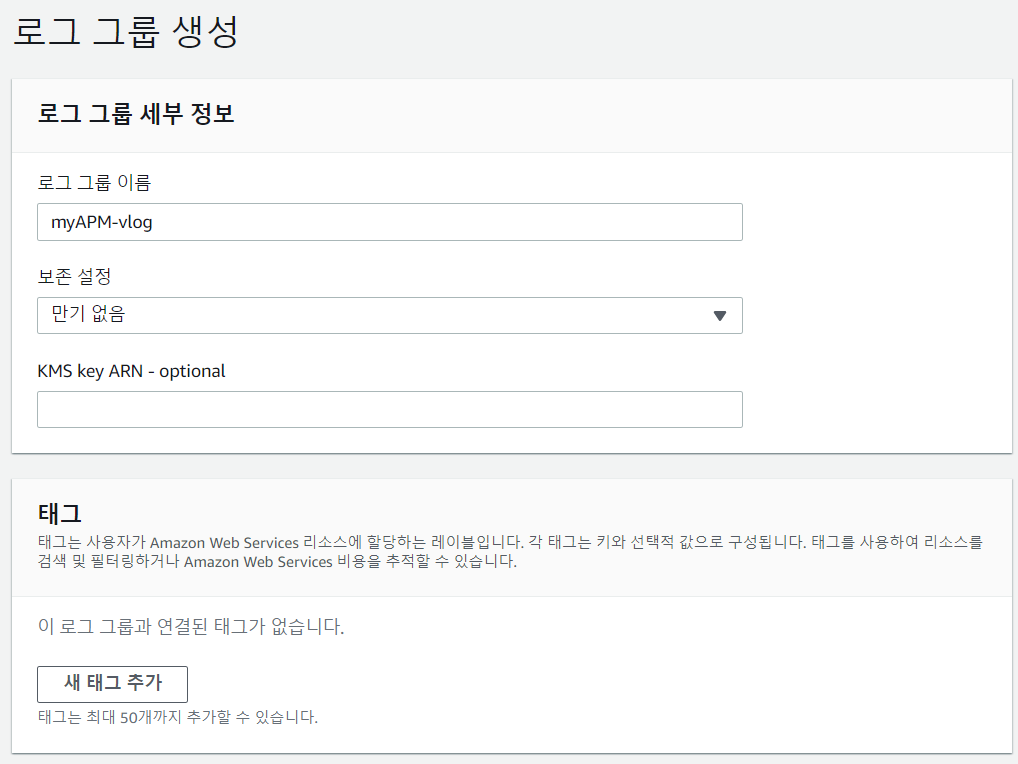 수집된 로그는 CloudWatch에 push 되어 만료일 설정을 통한 cloudwatch group을 설정한다.