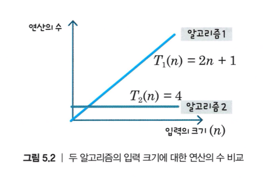 - 알고리즘 1은 입력의 크기 n에 비례하는 수의 연산이 실행됨