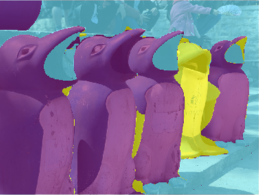 나는 강아지를 보라색으로, 그 외 배경을 노란색으로 표시했다.