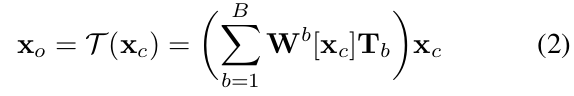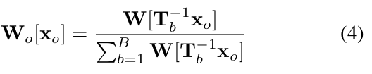 Wob[xo]는 point xo에 대한 sampled observation space blending weights의 bth channel을 나타낸다.
