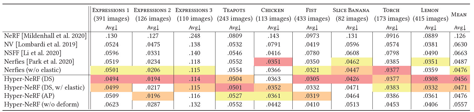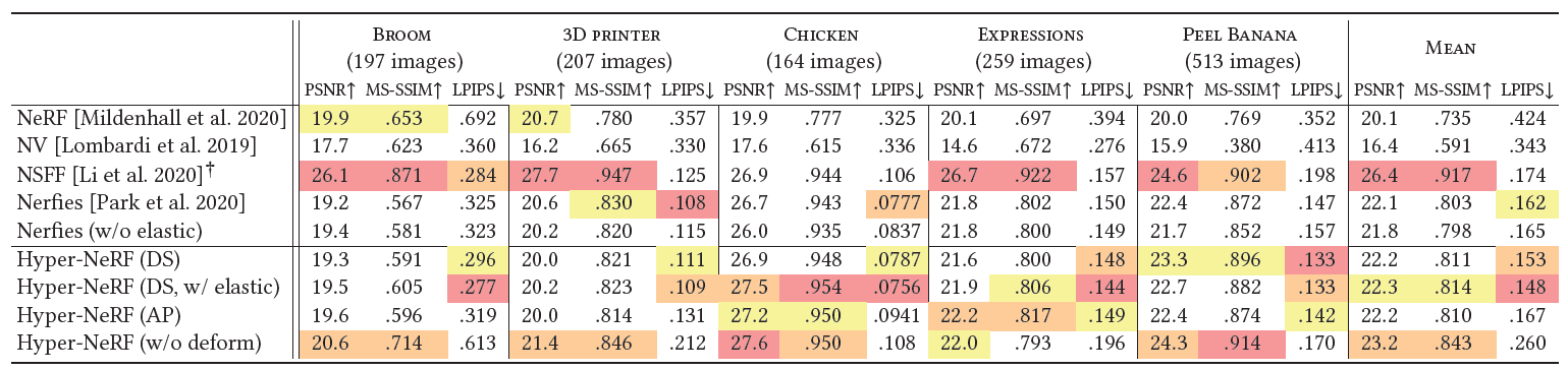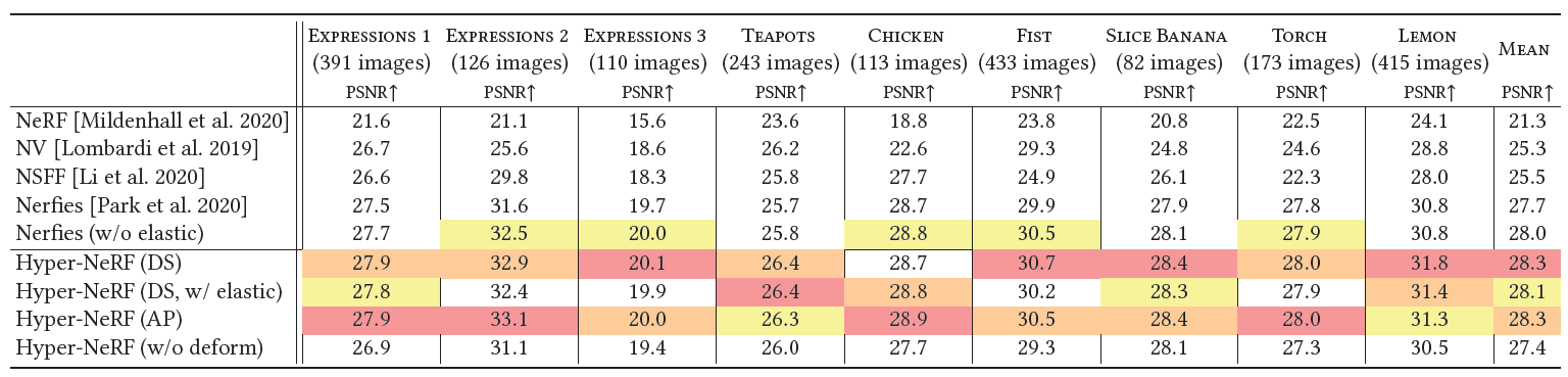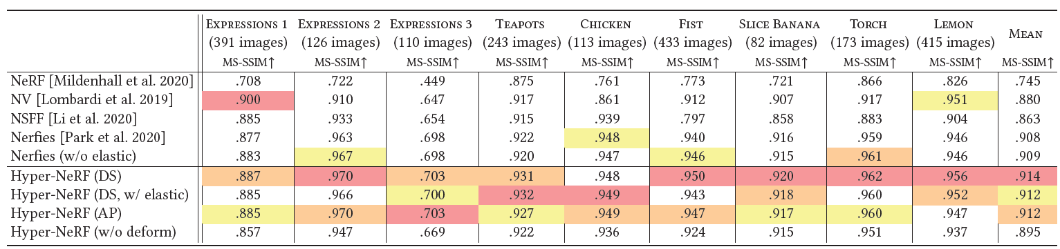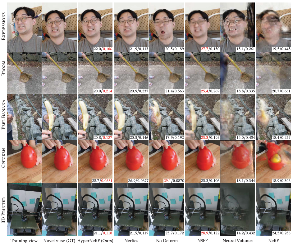 - 우리는 HyperNeRF라고 불리는 우리의 방법이 2가지 task들에 대해 존재하는 방법들을 압도함을 보였다.
