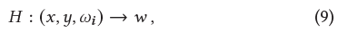 각 observation-space sample point x는 mapping H:(x,ωi)→w를 사용하여 mapping된다.