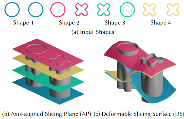 Fig. 3. 우리가 "ambient surface"라고 부르는 더 높은 차원의 surface의 slice로서 Level=set methods model shapes. 우리는 2개의 slicing method들을 제안함