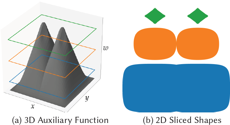 이 함수는 3D surface를 정의하며 이는 slicing surface에 의해 잘라진다.
