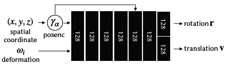 Fig. 14. 우리의 deformation network의 diagram으로 이는 Nerfies의 deformation MLP와 동일하다.