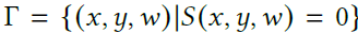 - 주변 좌표 wi 에서 2D surface는 w=wi를 통과하는 plane과 함께 이를 자르는 것에 의해 얻어지는 3D surface Γ의 2D cross-section으로서 표현된다.