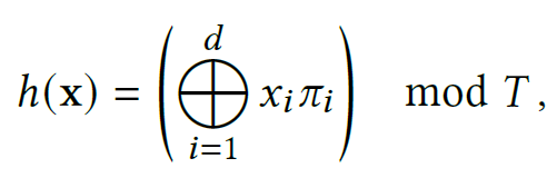 - 우리는 다음 형태를 갖는 공간적 hash function을 사용한다.
