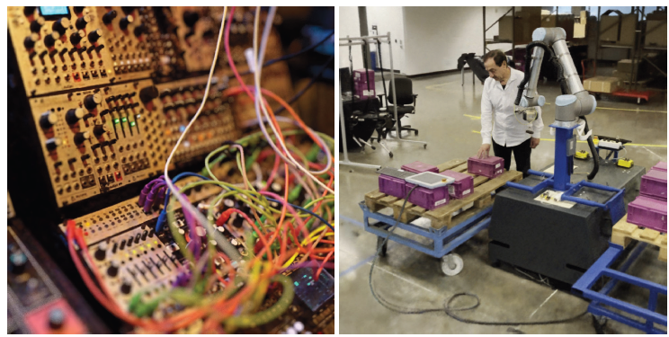 Fig. 12. Modular synthesizer의 NeRF reconstruction과 large natural 360 scene. 왼쪽의 이미지는 128개의 sample들을 쌓는데 5초가 걸렸고 brute force defocus effects를 허용한다. 오른쪽 이미지는 같은 GPU에서 1초당 10 frames로 동작하는 상호작용하는 session으로부터 취해졌다.