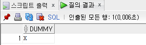 DUMMY 컬럼 하나만 존재하며 값은 'X'이고 데이터는 한 행만 존재합니다.