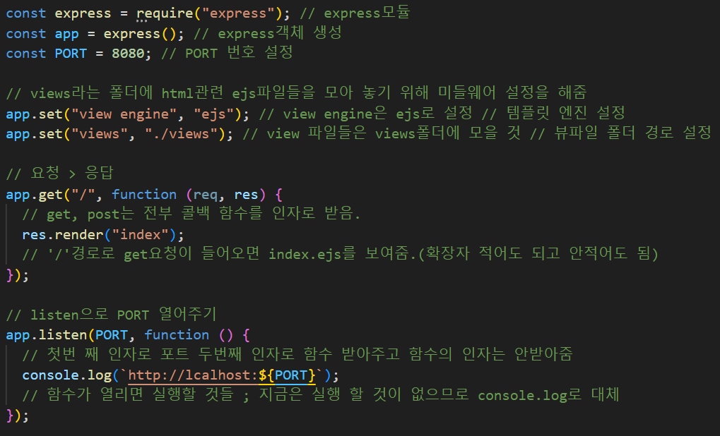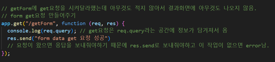 get, post 요청에서 응답하는 방식에는res.send가있고 res.render가 있다.
