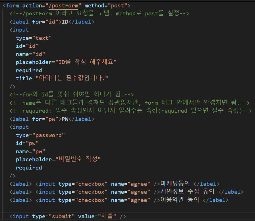 form: 입력된 데이터를 한 번에 서버로 전송하기 위해 사용