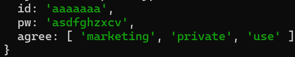post요청에서 form을 전송하고 데이터 값을 보면 checkbox의 데이터들이 on으로만 나타나진다. 이건 input의 type에서 value값을 주면 된다.