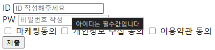 여기서 input 속성으로 적은 title의 값은 결과화면에서 ID text란에 커서를 가져다 놓으면 나오는 값이다.