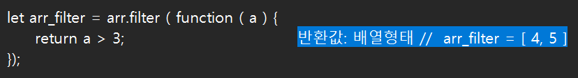 - arr.filter( ): return이후의 조건에 만족하는 요소를 찾아서 새로운 "배열"로 반환시킨다.