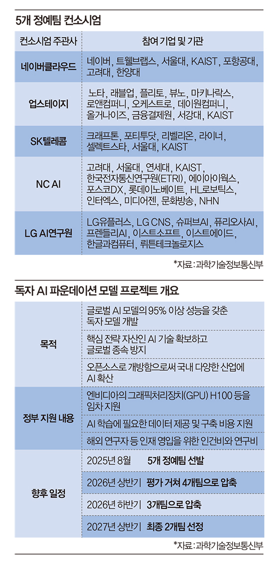 우리나라도 소버린 AI의 중요성을 인식하고 여러 노력을 기울이고 있습니다. 특히 대기업들이 자체적으로 AI 모델을 개발하고, 정부 차원의 AI 전략을 추진 중입니다. 과기부의 보도자료에 따르면 다음과 같은 공통 요소를 통해 5팀이 선발되었다고 합니다.
