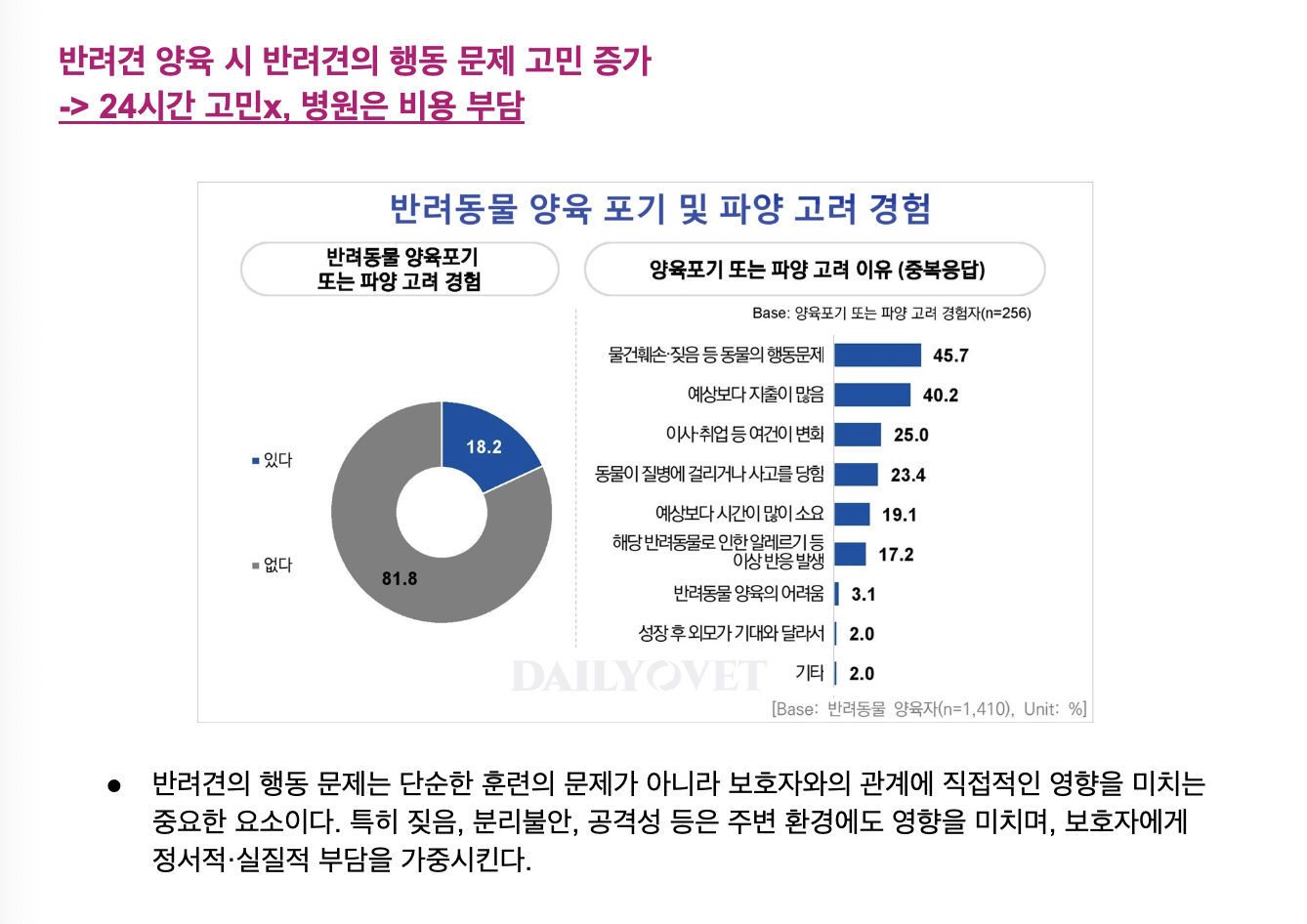 위에서 언급했듯이 각 팀에는 정해진 대주제가 있었고, 그에 따라 세부 주제를 정해야 했습니다. 우리팀은 반려견 상담, 소상공인 지원, 자동차 정비 상담 등 여러 아이디어가 나왔었는데, 관련 데이터 조사를 통해 반려견 상담으로 정하게 되었습니다.
