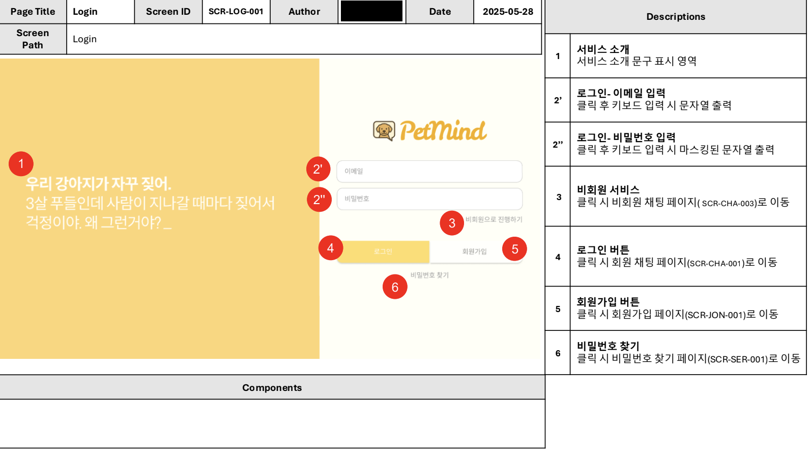 프론트엔드는 피그마로 만들어두었던 디자인과 컨셉을 화면으로 표현하는 부분에선 크게 어려운 부분이 없었습니다만 달력과 같은 동적 UI를 구현하고 연결하는 부분에서 약간의 어려움을 겪었습니다. (아래는 화면설계서의 일부입니다)