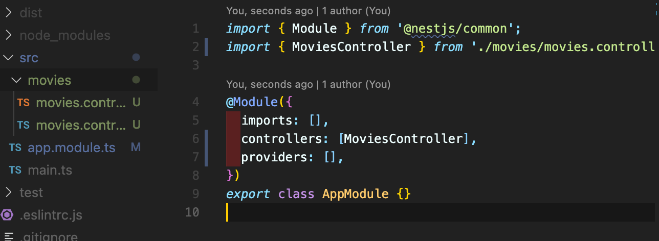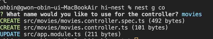 (이름만 설정해주면 자동으로 컨트롤러 모듈 생성 + module.ts에 자동으로 생성까지 해줌!!)