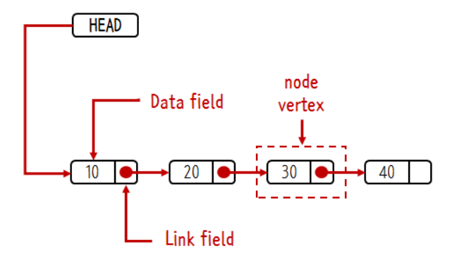 위 그림은 단방향 linked list의 구조에 대한 시각화 자료이다. 리스트는 노드(엘리먼트)들의 모임이며 각 노드는 변수가 저장되는 Data field, 다음 노드의 참조값(주소)을 저장하여 알려주는 Link field로 구성되어 있다.