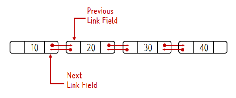 단방향으로 연결된 단방향 연결 리스트의 단점을 보완하기 위한 이중 연결 리스트도 존재한다. 그림과 같이 각 노드가 Previous와 Next로 구성되어 있다. 양방향으로 연결되어 있기 때문에 노드를 탐색하는 방향이 양쪽으로 가능하다. 특정 인덱스 위치의 엘리먼트를 가져오는데에 장점이 분명하다.