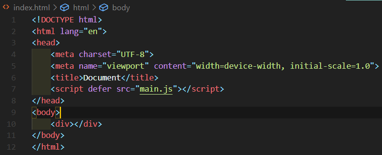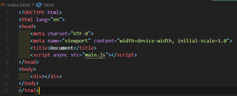 브라우저가 html을 다운받아 parsing해서 페이지가 준비 된 다음에 script태그를 만나 서버에서 받아와 main.js를 실행한다. js를 받기 전에 페이지가 준비되어 사용자가 페이지 컨텐츠를 볼 수 있다.