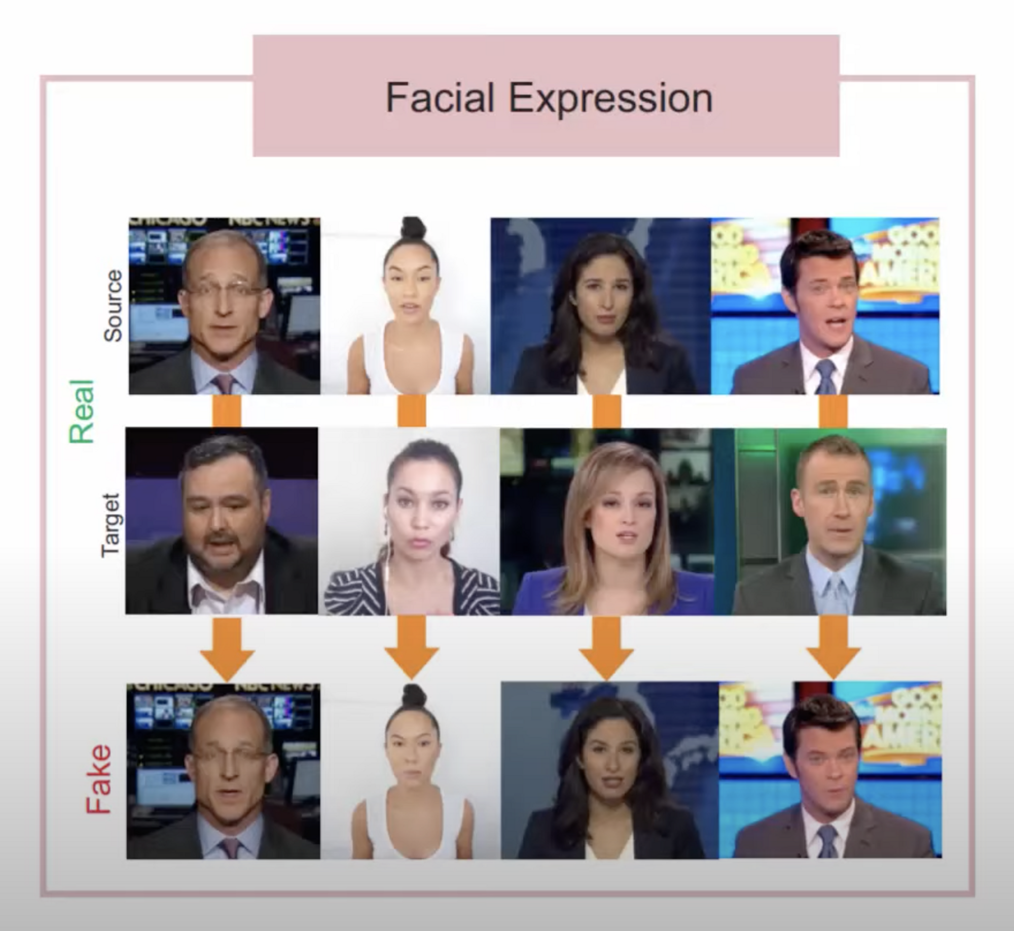 - A deep learning-based technipue able to create fake images / videos : 딥러닝 기반의 기술을 이용해서 fake 이미지, 비디오를 만드는 기법