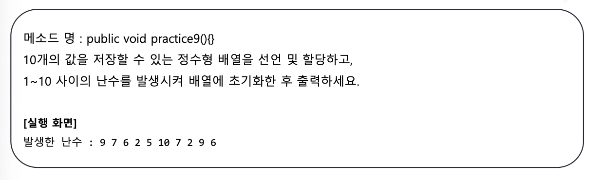 for (int i=0; i<input.length; i++) { // 1~10 사이의 난수를 발생시켜 배열에 초기화한 후 출력하세요