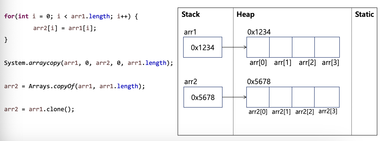 int[] copyArr1 = new int[arr.length]; // 5칸 짜리 배열 생성