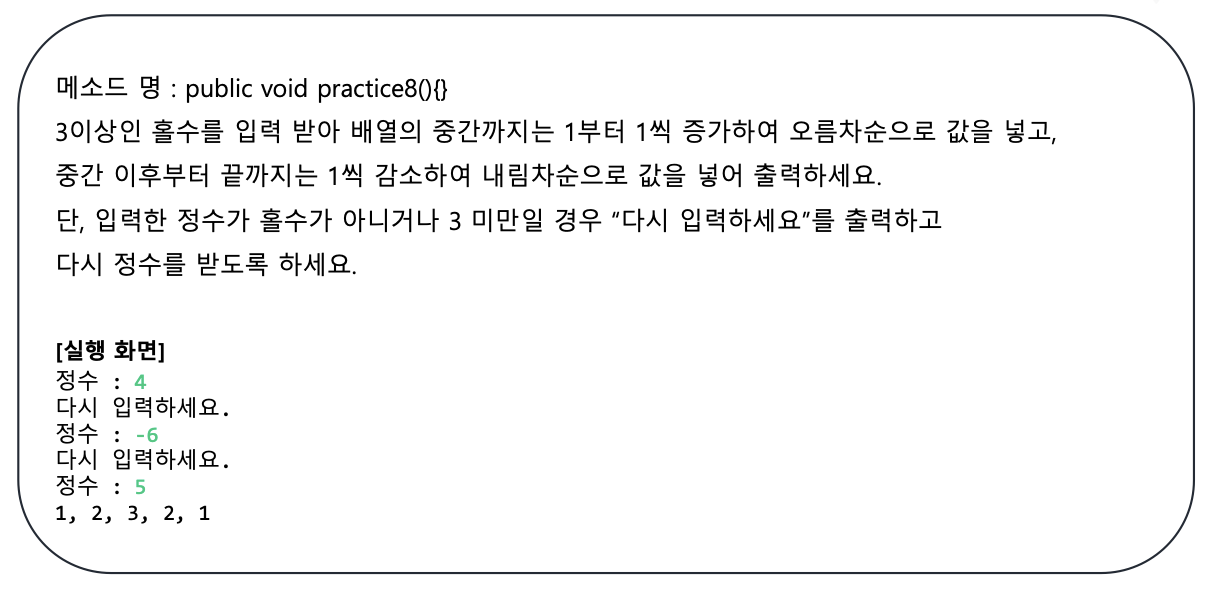 while(true) { // 3 이상의 홀수가 입력 될 때 까지 무한 반복