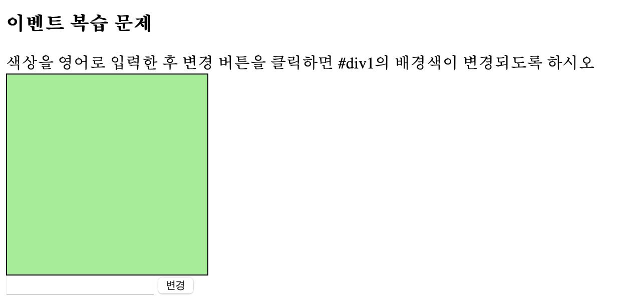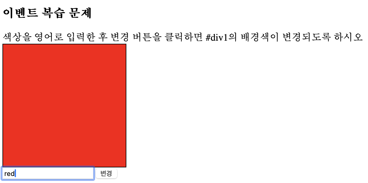 색상을 영어로 입력한 후 변경 버튼을 클릭하면 #div1의 배경색이 변경되도록 하시오