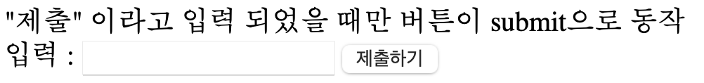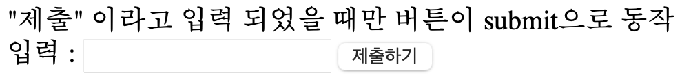 "제출" 이라고 입력 되었을 때만 버튼이 submit으로 동작<br>