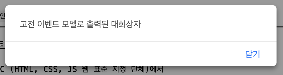 alert("고전 이벤트 모델로 출력된 대화상자");