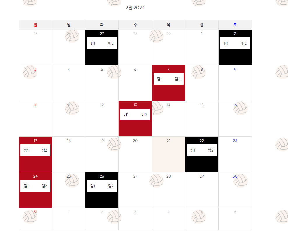 경기일자(홈, 원정) 색깔 나누기