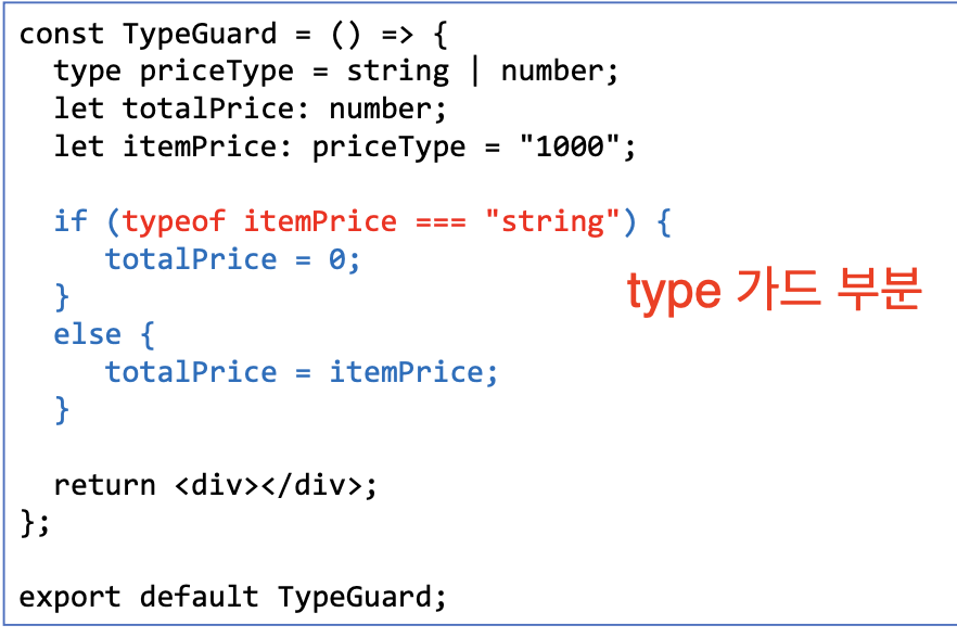 union 타입을 사용할 경우, 자바스크립트의 typeof 연산자를 이용하여 코드 검증을 수행하는 것을 의미