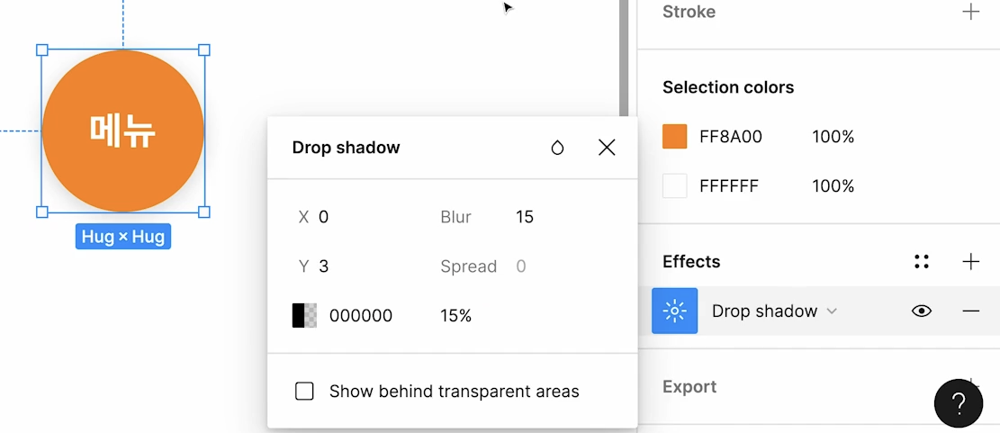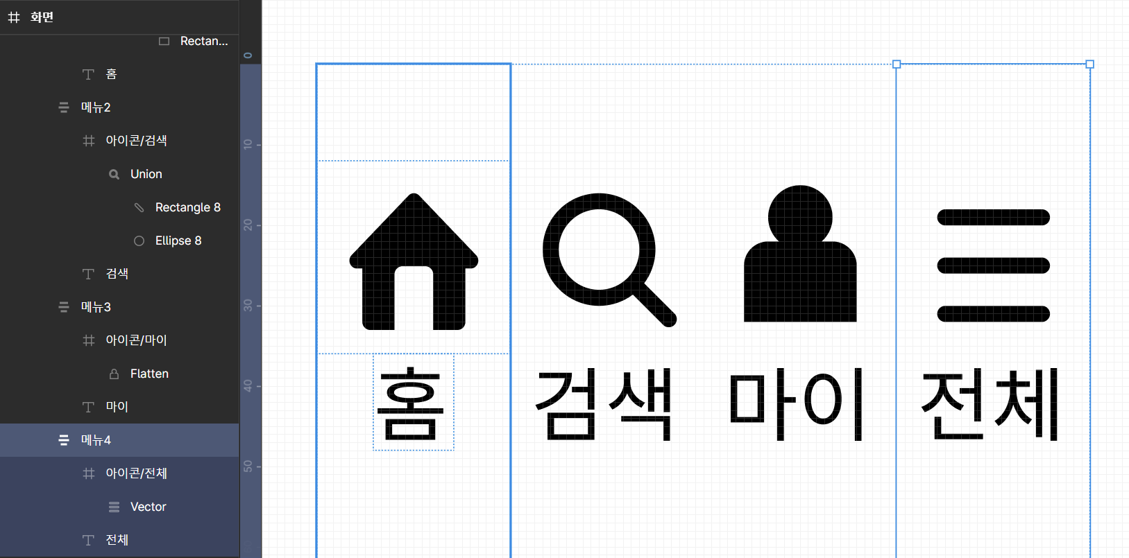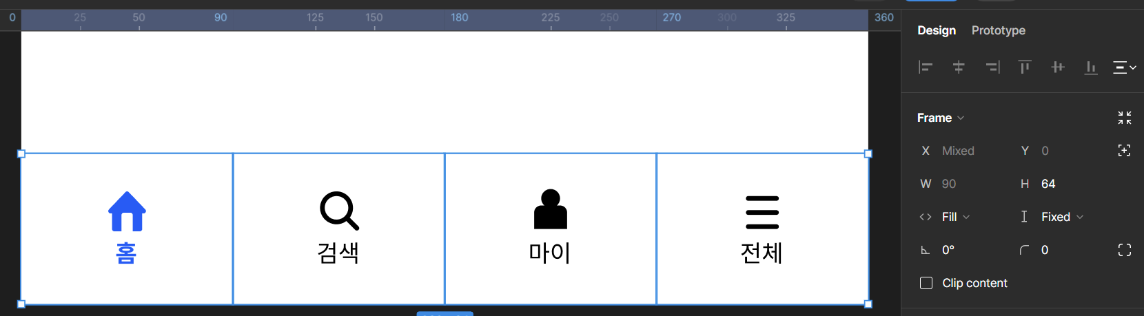 을 아이콘과 오토 레이아웃 처리 ! 그리고 위아래 패딩값을 적당히 조절메뉴 1