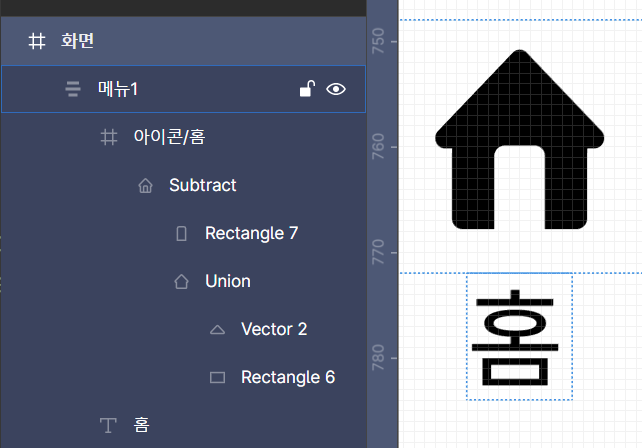 )을 선택하고 Subtract로 빼면 요런 아이콘이 나오고홈