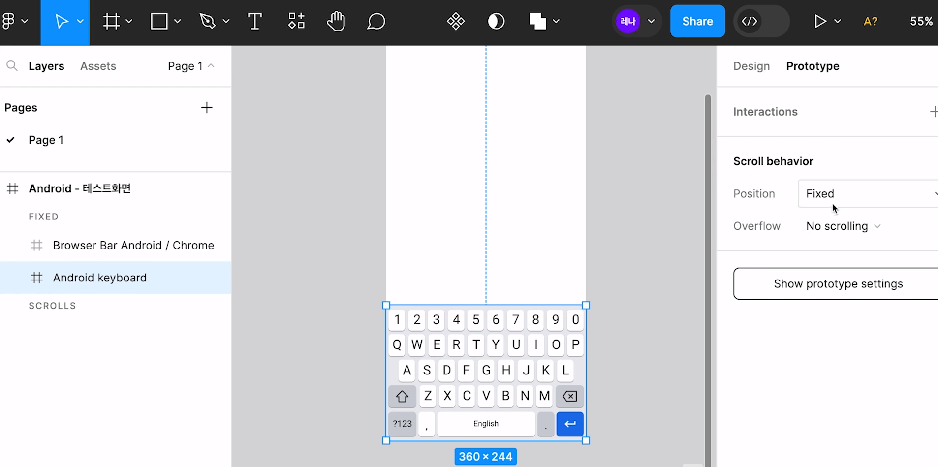 적용키보드가 바닥에 고정된 상태로 뒤쪽 컨텐츠들이 움직일 수 있음
