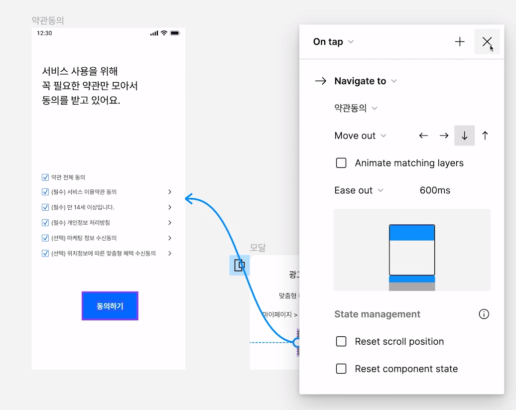 On tap, Navigate toMove out, 방향 설정