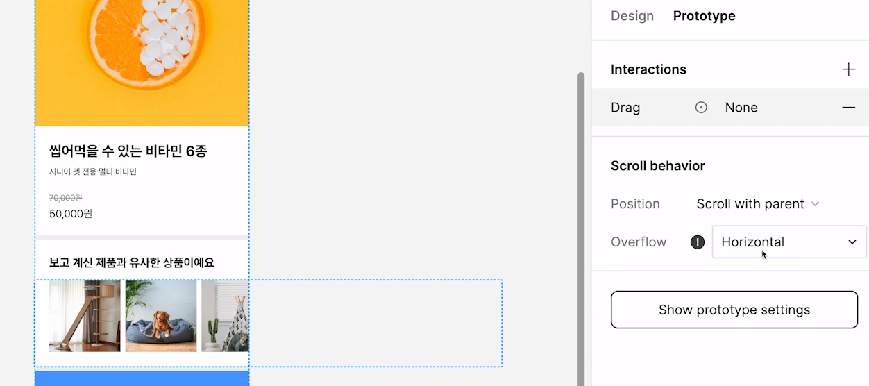 On Drag, 이동None, Scroll with parent, Horizontal
