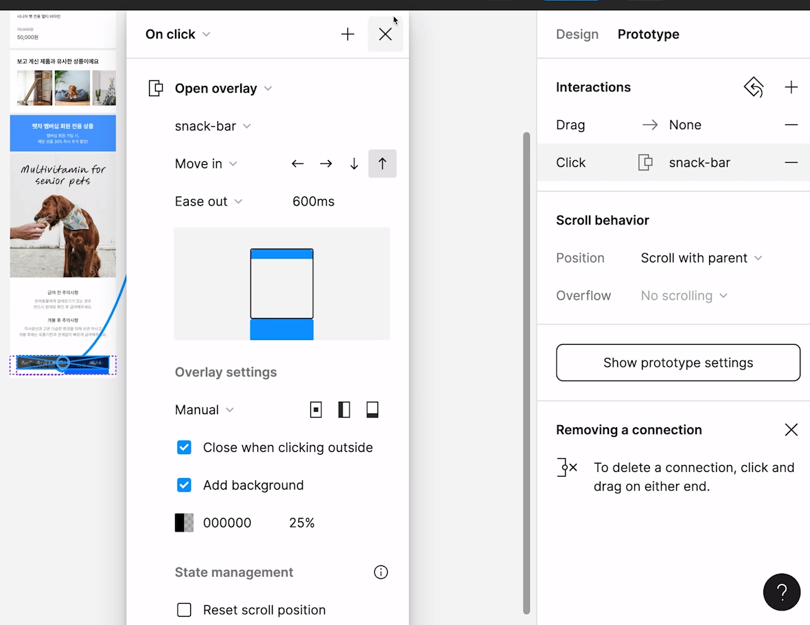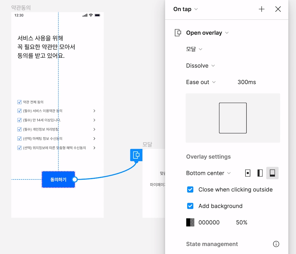 After delay, Open overlay로 지정