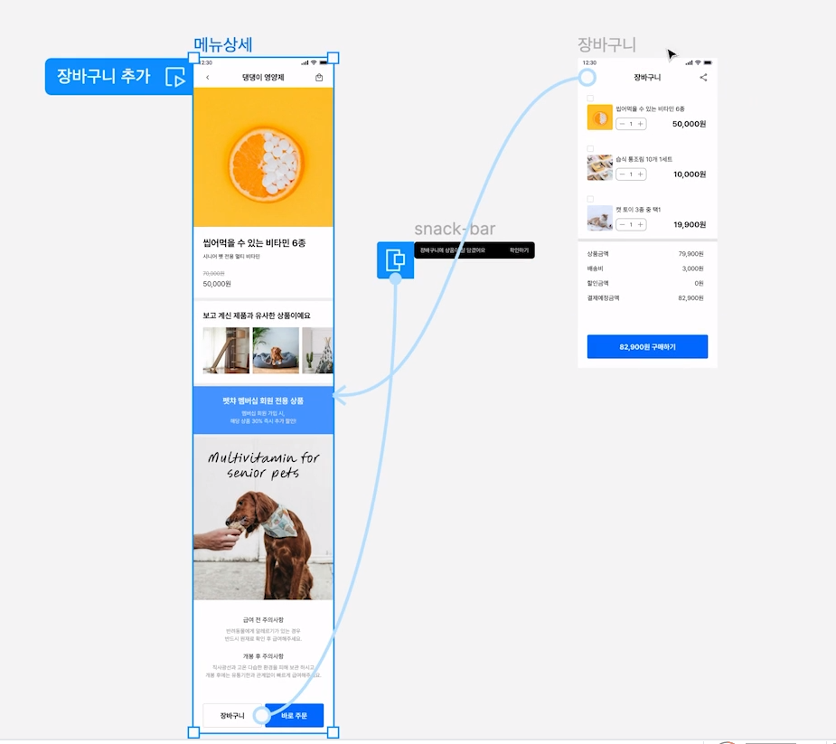 | 장점 | 하나의 툴만 결제해도 화면 디자인 + 애니메이션 프로토타입까지 가능함 | 섬세한 애니메이션에 코드까지 제공 |