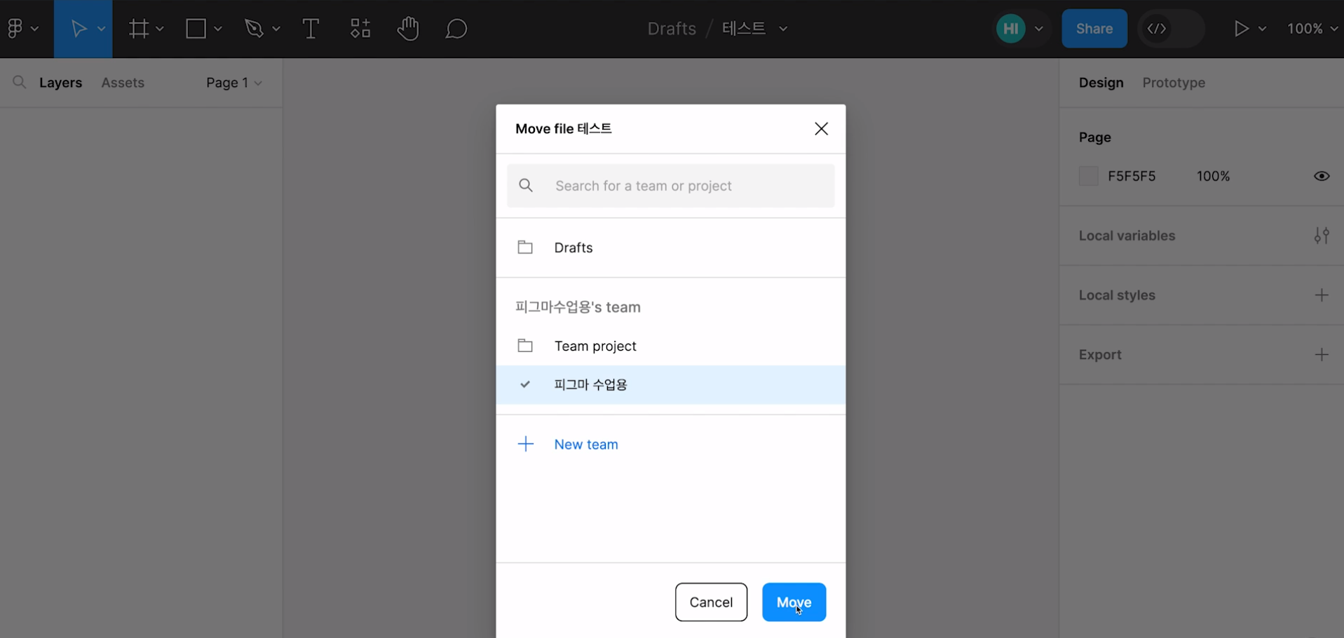 layer는 layer를 포함하는 Page의 이름으로 묶여있는 것을 확인할 수 있다.