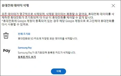 ✨팁:초기화 시 백업되지 않은 데이터는 모두 삭제되며 복구가 불가능합니다.