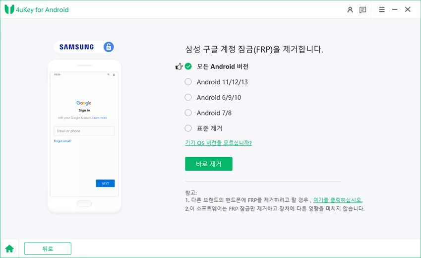| 4uKey for Android | - 계정 정보 없이도 사용 가능 - 빠르고 간단한 절차 - 복잡한 설정 불필요 |