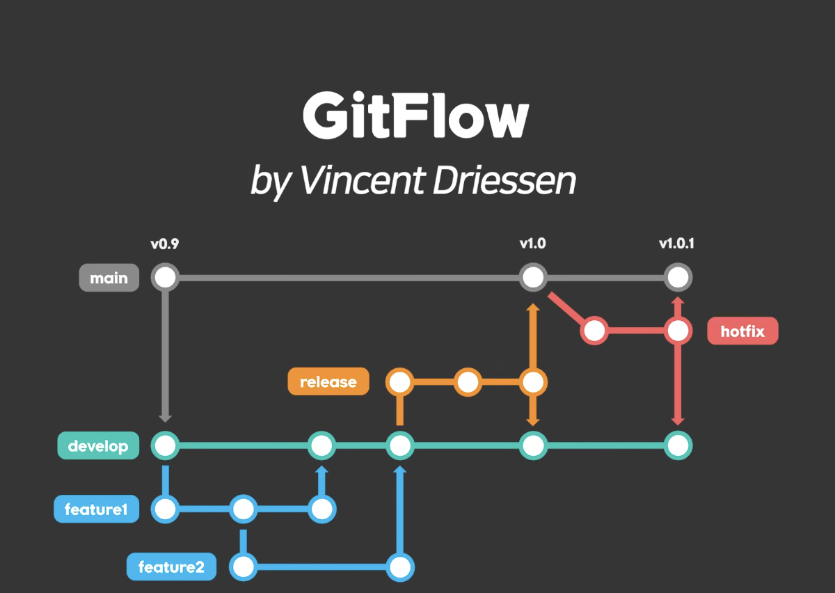 GitFlow의 5개 브랜치 전략 (by Vincent Driessen)