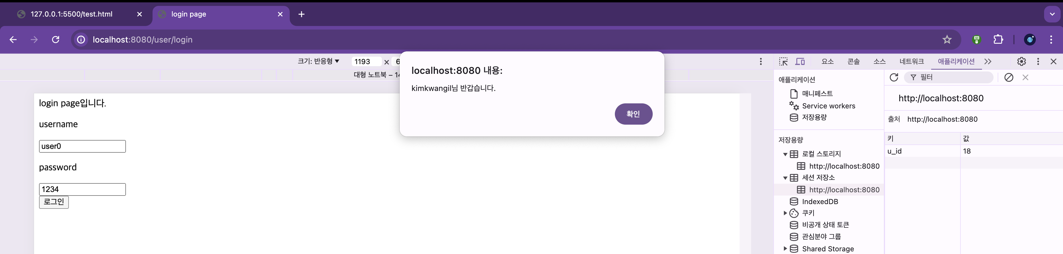 : 로그인 후 성공적으로 u_id값이 sessionStorage에 저장된 것을 볼 수 있다.