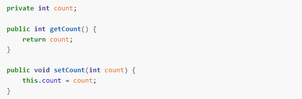 -> 이 경우 클래스 외부에 해당 멤버의 접근을 제공하기 위해 getter, setter 메서드를 제공하는 방식을 사용한다 getter 는 멤버값을 제공 , setter는 멤버값의 변경을 위해 사용