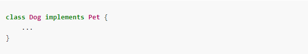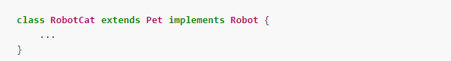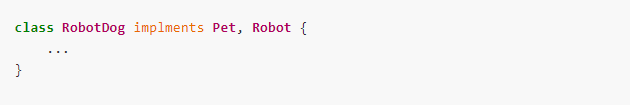 ex) 로봇 애완견을 만들기 위해 pet과 robot 인터페이스를 동시에 구현할 수 있다